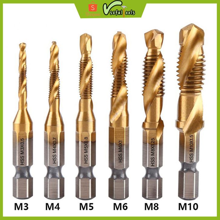 Usefultools 6PCS Mata Bor Pembuat Ulir Drat Drill Tap Set Hex Twist Spiral Tapper Baut Bit Drilling