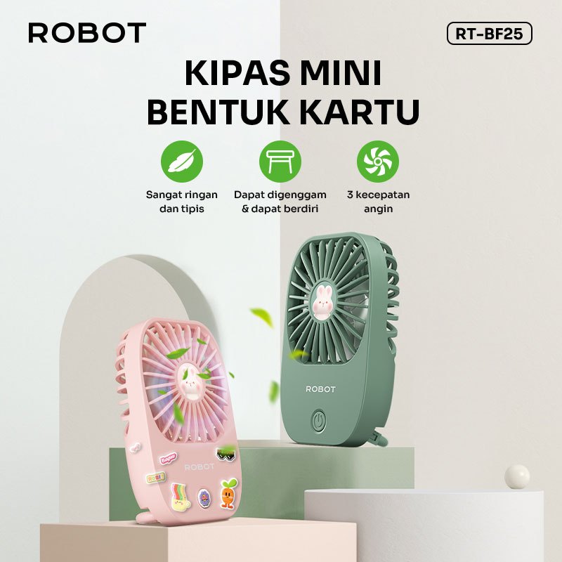 Kipas Mini Karakter Kelinci Portabel 1200mAh Kipas Angin Lucu Genggam Kipas Berdiri Free Stiker RT-BF25 Original