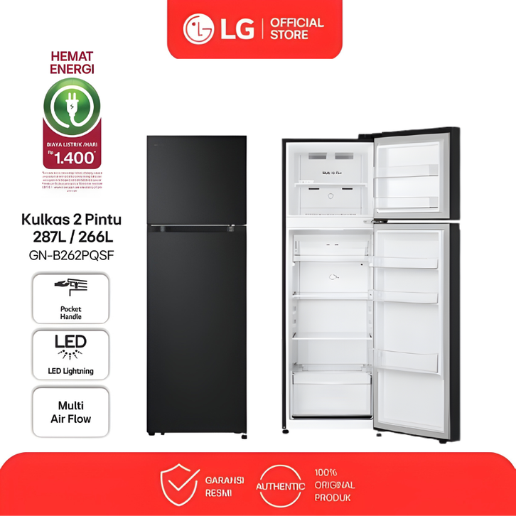 LG KULKAS 2 PINTU 287L GN-B262PQSF 263 235 LITER LEMARI ES ELEKTRONIK PENDINGIN HEMAT LISTRIK PORTABLE DUA PINTU MURAH