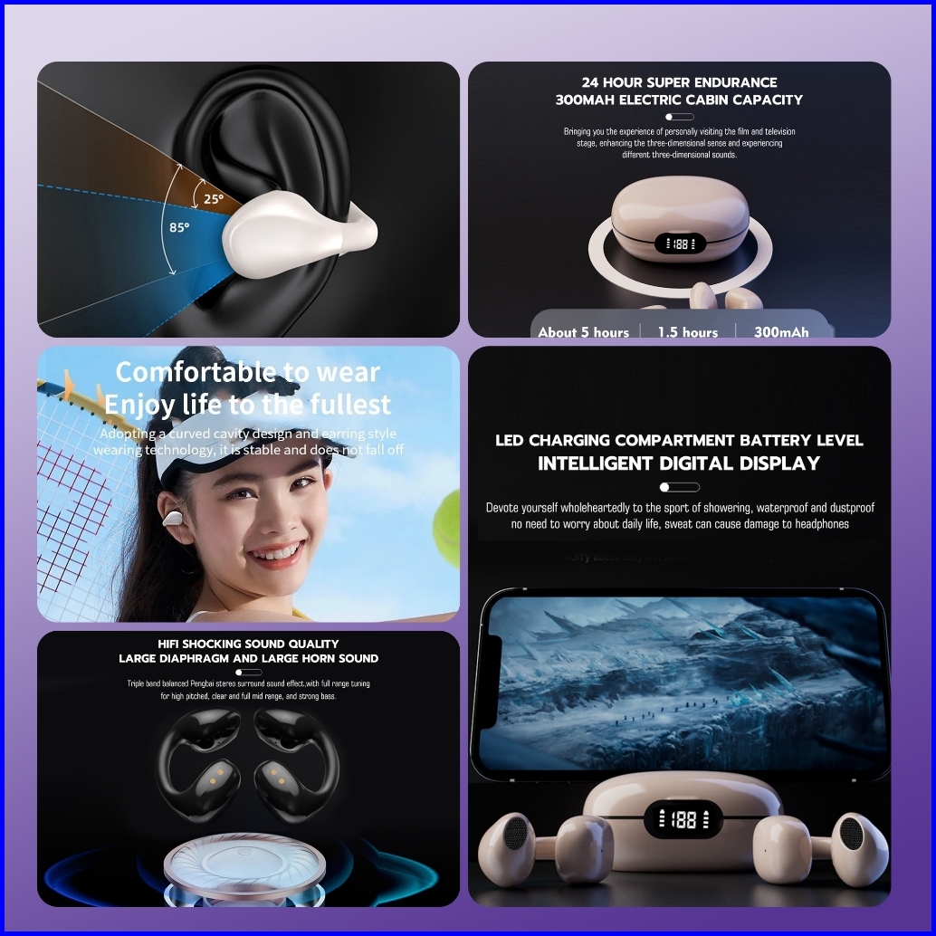 2024 Baru Jovitech Wireless Earbuds Open Ear Sport Headphones Ear Clip Earphone Tws Bluetooth Air Conduction Wireless Bl