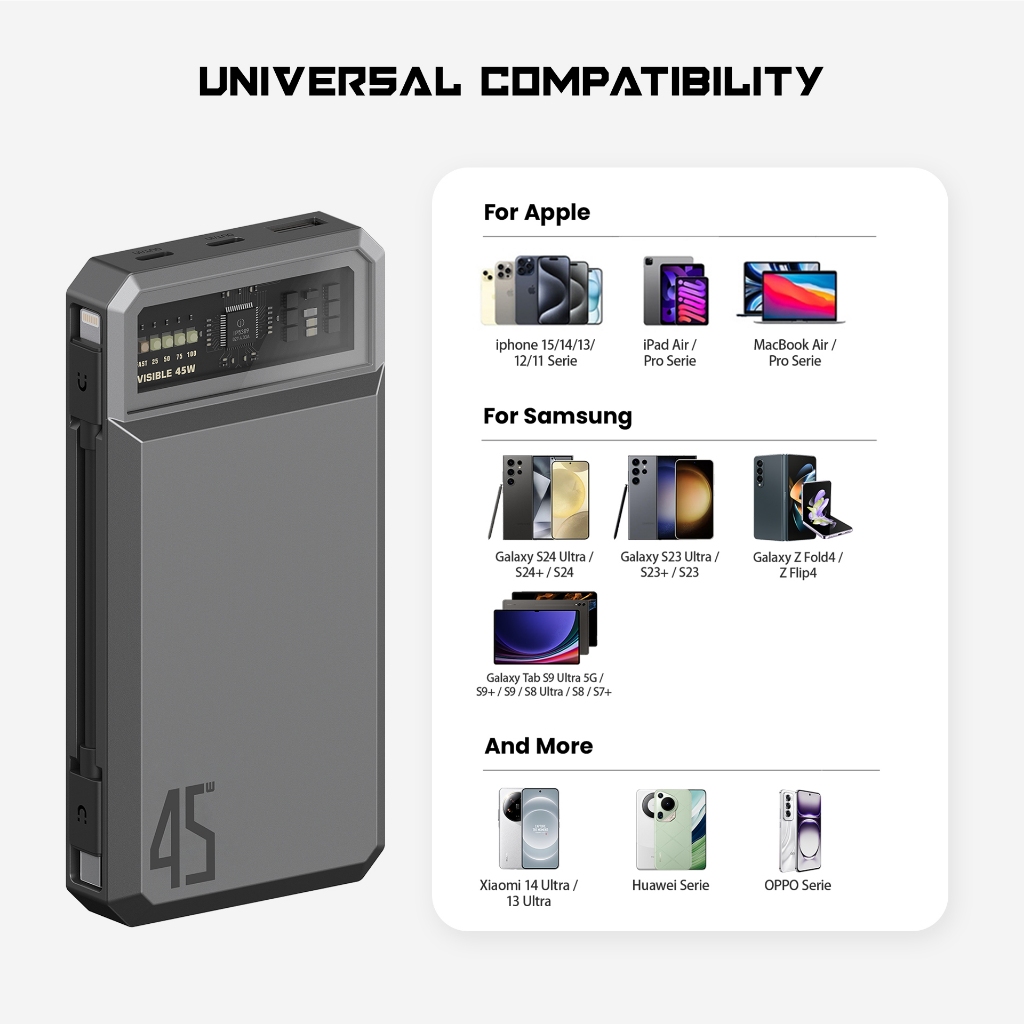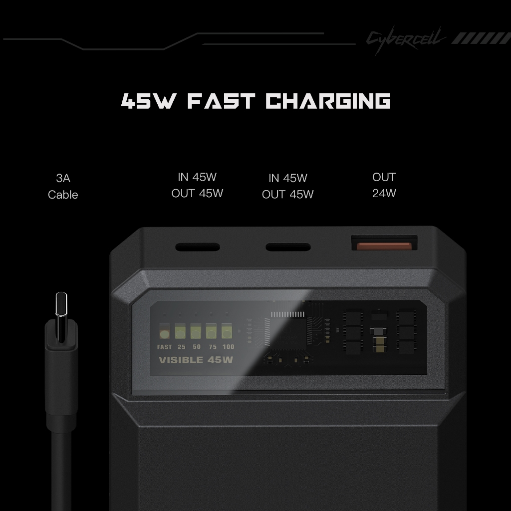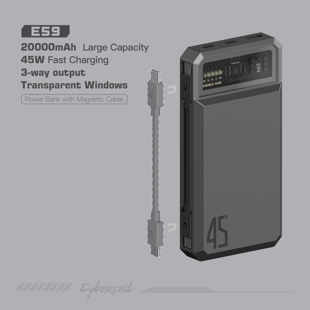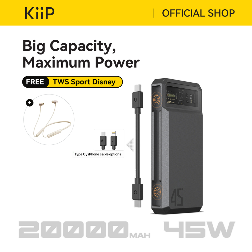 KiiP E59 Power Bank Magnetic Cable 45W Fast Charging TC PD Lightning 20000MAH