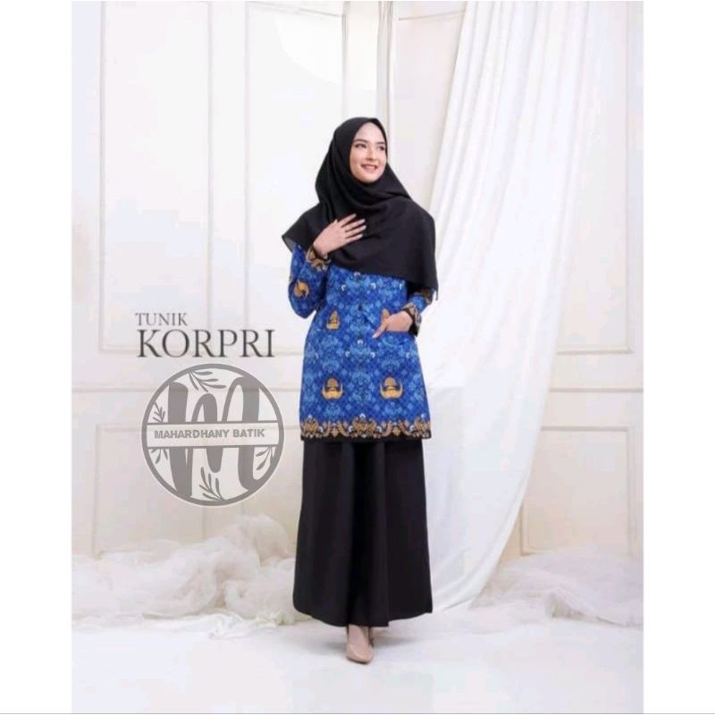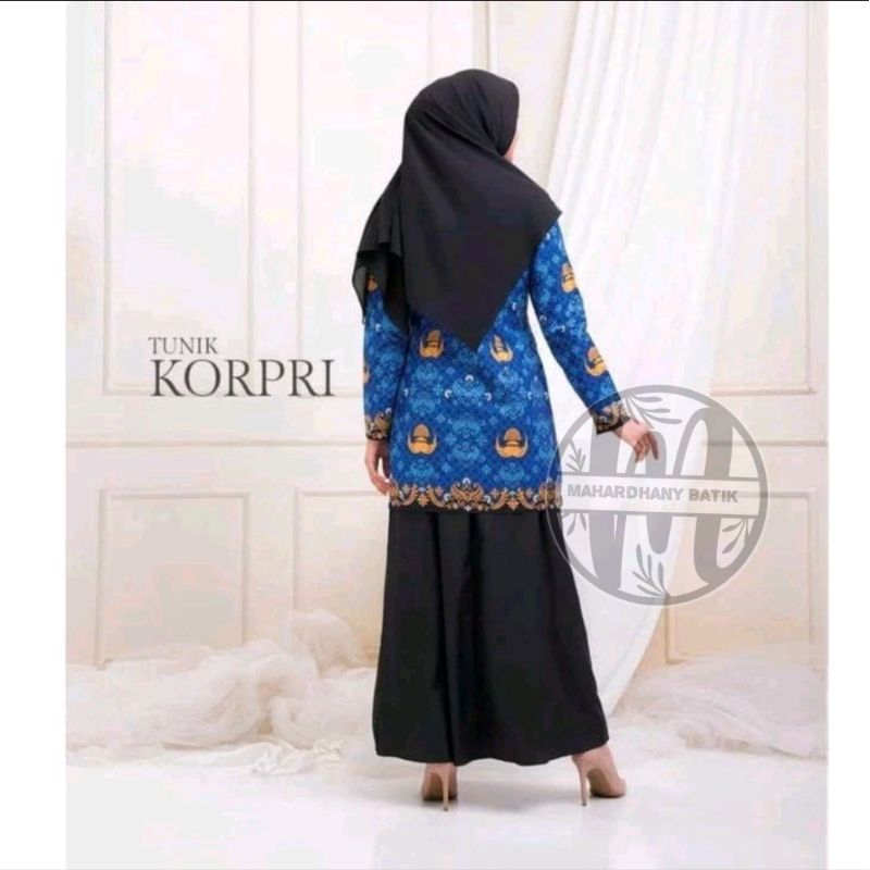 TUNIK KORPRI SAKU SAMPING kwalitas premium baju seragam PNS/ASN atasan wanita kerah hitam lengan panjang bahan katun c40