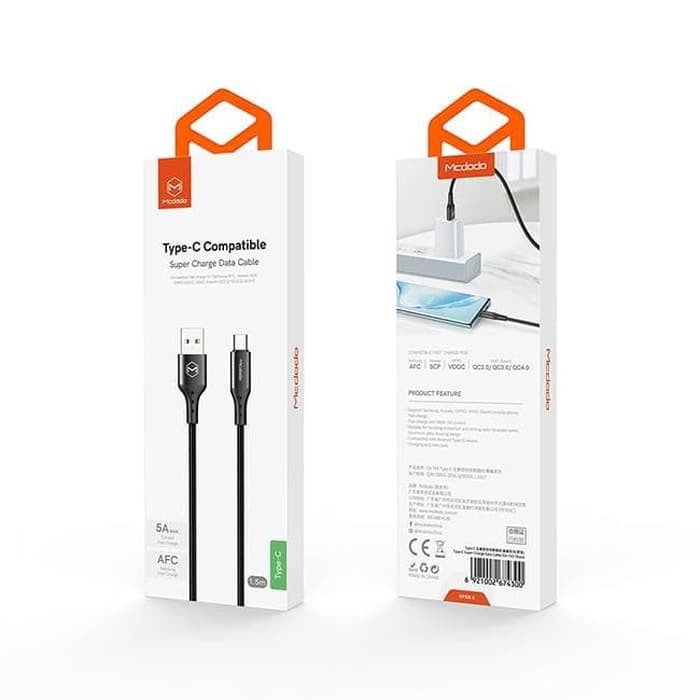 Mcdodo CA 7430 USB Cable 1.5M Type C 40W 5A Super Fast Charge VOOC QC 3.0 CA7430