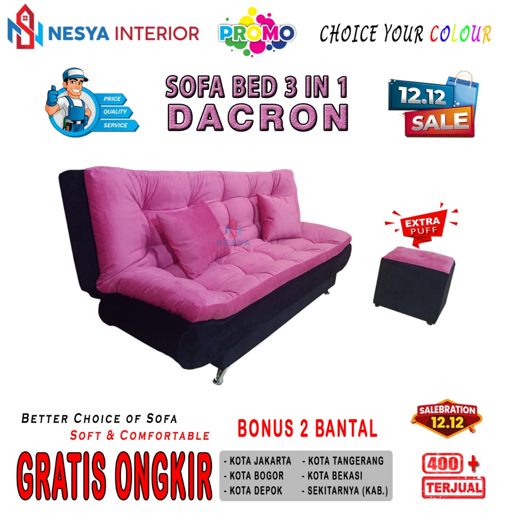 Sofa Ruang Tamu Elegant Sofa Bed Yamada Dacron + Puff + 2 Bantal by NESYA INTERIOR