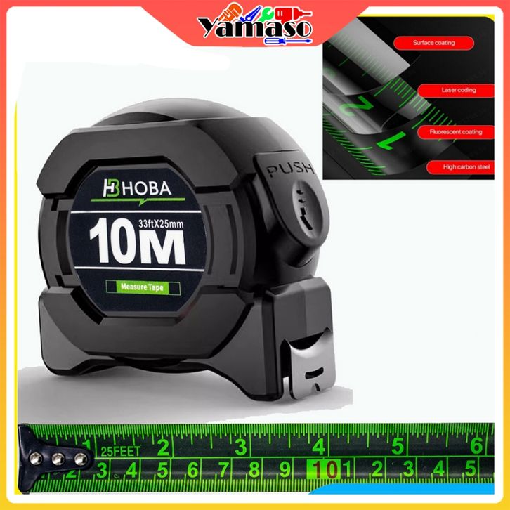 5m Pita pengukur fluoresensi yang dapat mengunci sendiri pengukur baja tahan karat tebal impor
