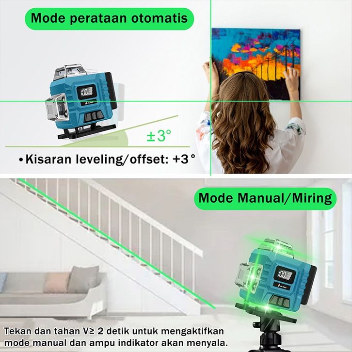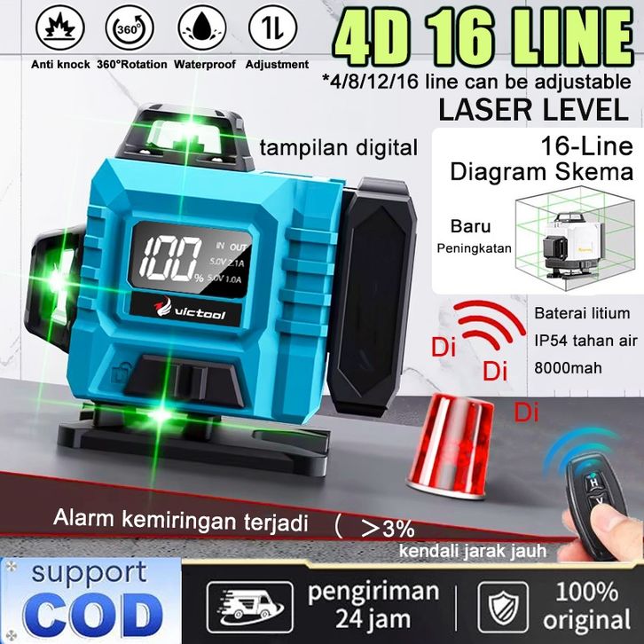 waterpass laser level tukang bangunan multifungsi waterpass digital 16 line Tingkat laser tampilan