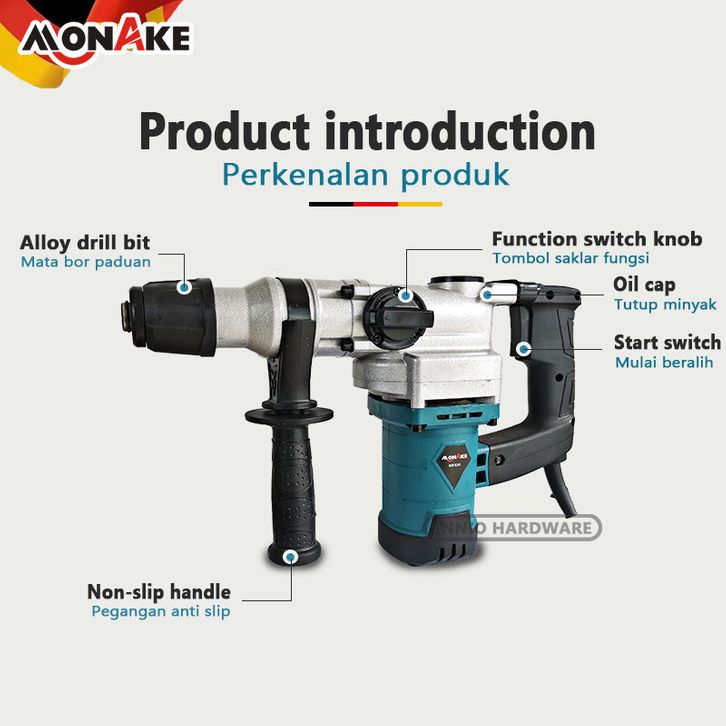 GTW CUCI GUDANG!! MONAKE Rotary Hammer Drill Mesin Bor Beton Listrik Electric Hammer
