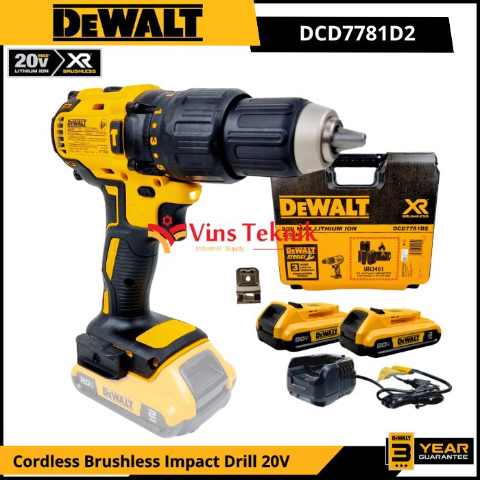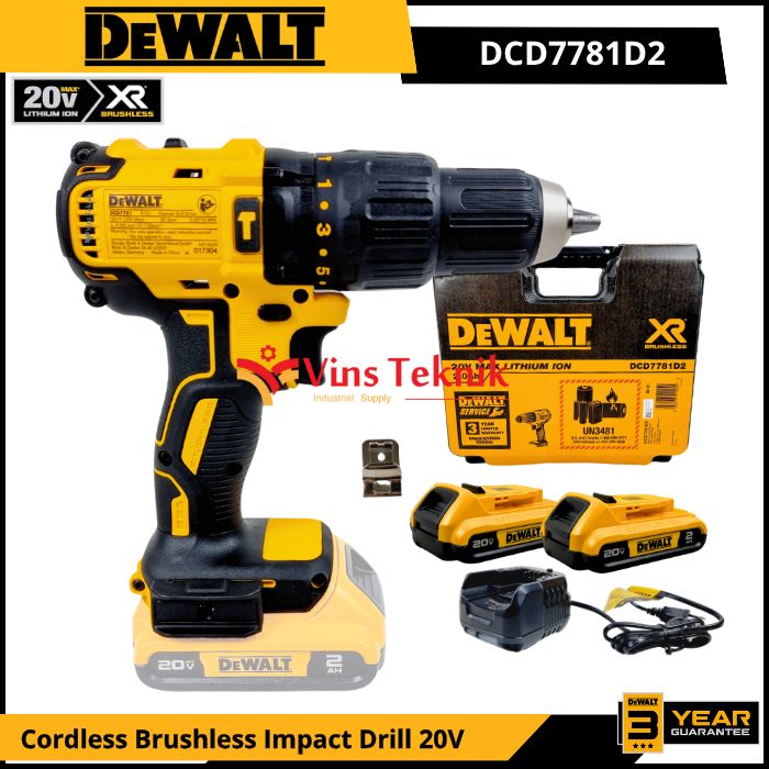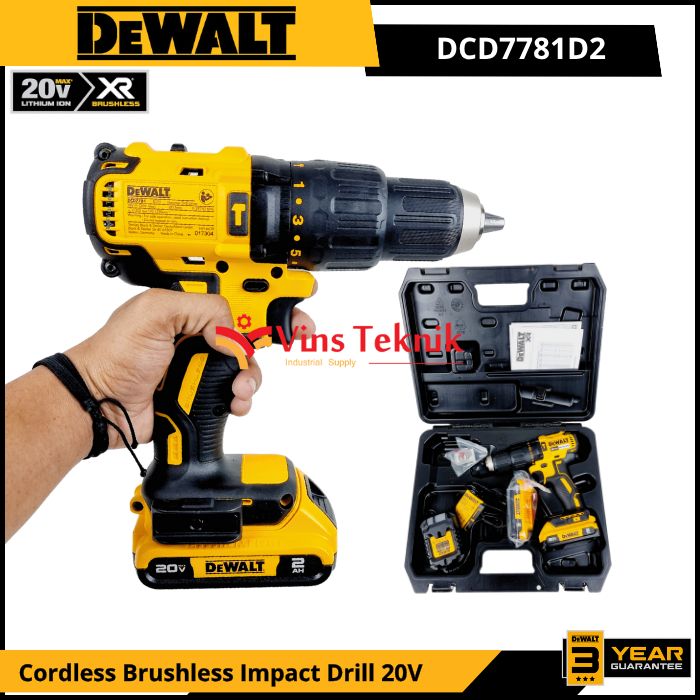 DEWALT DCD7781D2 Mesin Bor Baterai Cordless Brushless Impact Drill Hammer Drill 13MM 20V DCD7781