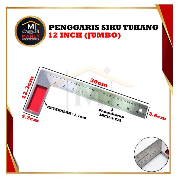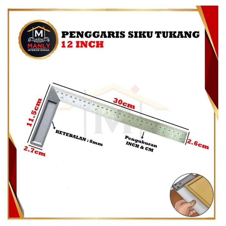 Penggaris Siku Tukang 25 cm 10 inch 30 cm 12 inch Siku Tukang L Waterpass Penggaris alat ukur akurat