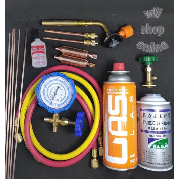 PAKET ALAT PENGISIAN GAS PENDINGIN ISI PREON KULKAS R134A KOMPLIT + LAS MURAH
