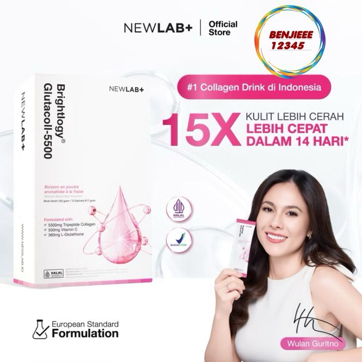 NEWLAB GlutaColl-5500 15 SACHET minuman glutathione Brightlogy Gluta Coll 5500 newlab Newlab+ Newlab collagen drink reg
