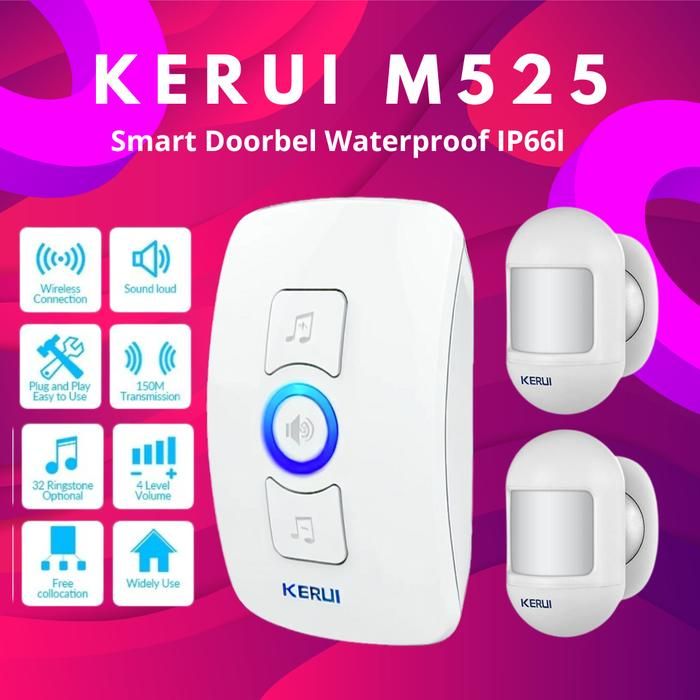 KERUI Bel Alarm Sensor Gerak M525 Doorbell 2 Sensor Mini P831 Wireless - Putih