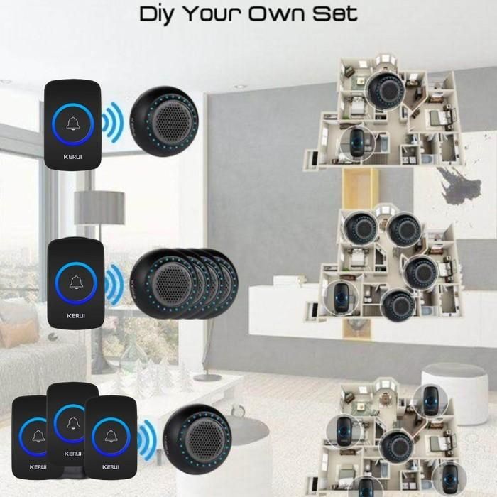 KERUI Bel Pintu Rumah Wireless M523 Waterproof 2 Receiver F50 Doorbell Multi Tone Memory - Putih