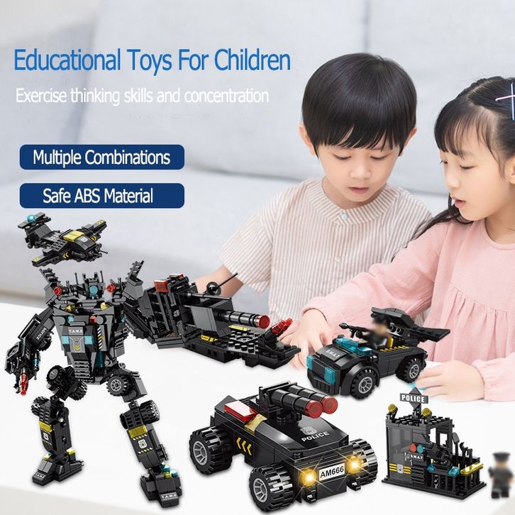 ZHEGAO Mainan 700Pcs Robot Polisi Hawk SWAT M0Del Puzzle Blok Bangunan robot mainan anak laki laki
