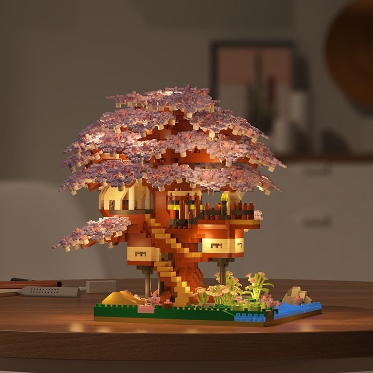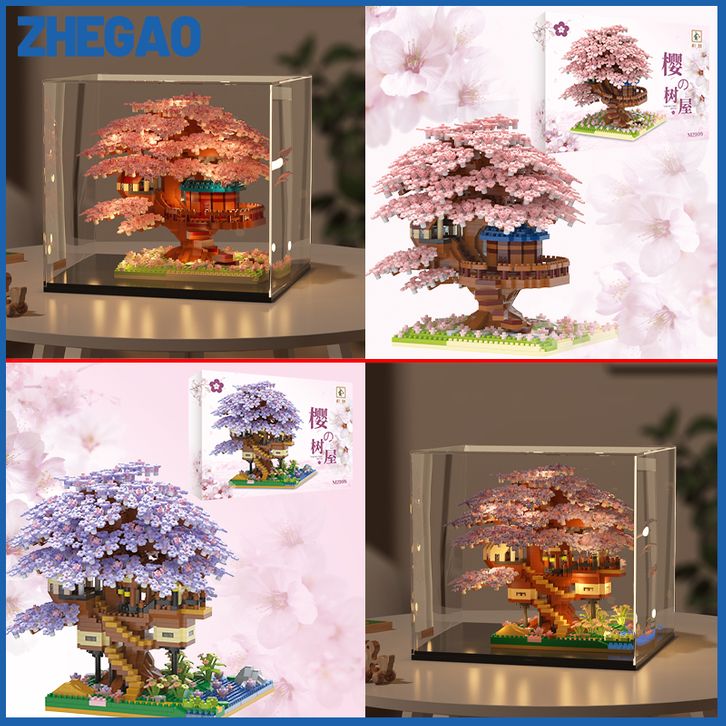 ZHEGAO Mainan 2229Pcs Pohon Sakura 3D Puzzle Blok Bangunan Mini Bricks Mainan Anak Perempuan valentine gift