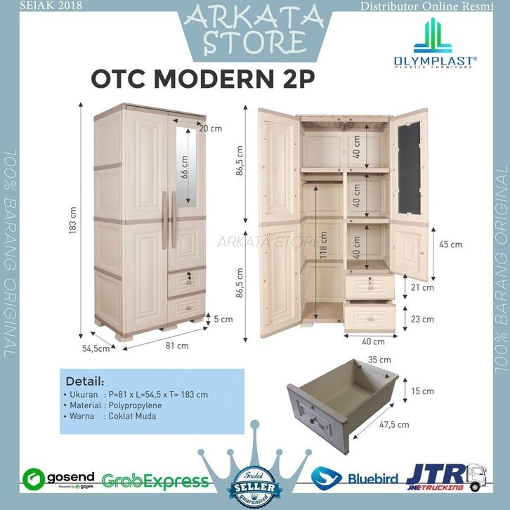 OTC 2P ERN - LEMARI PLASTIK/ LEMARI PAKAIAN 2 PINTU CERMIN + LACI OLYMPLAST GANTUNG - HANGER - RAK / LEMARI 2P PLASTIK