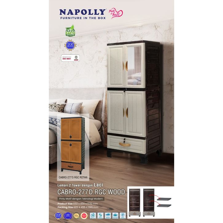 ICBC 277 D.RG.C - LEMARI PLASTIK GANTUNG + KACA + LACI NAPOLLY / LEMARI PAKAIAN NAPOLLY PREMIUM