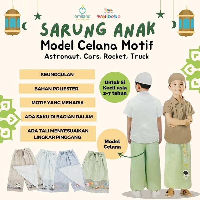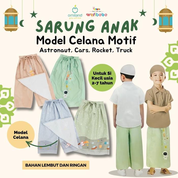 Omiland Sarung Anak Model Celana Motif Anak Laki-laki - Astronaut Hijau S