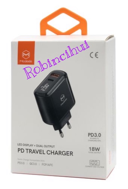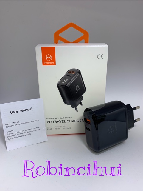 MCDODO Adaptor 20 Watt Dual Slot Led Display Fast Charging QC 3.0