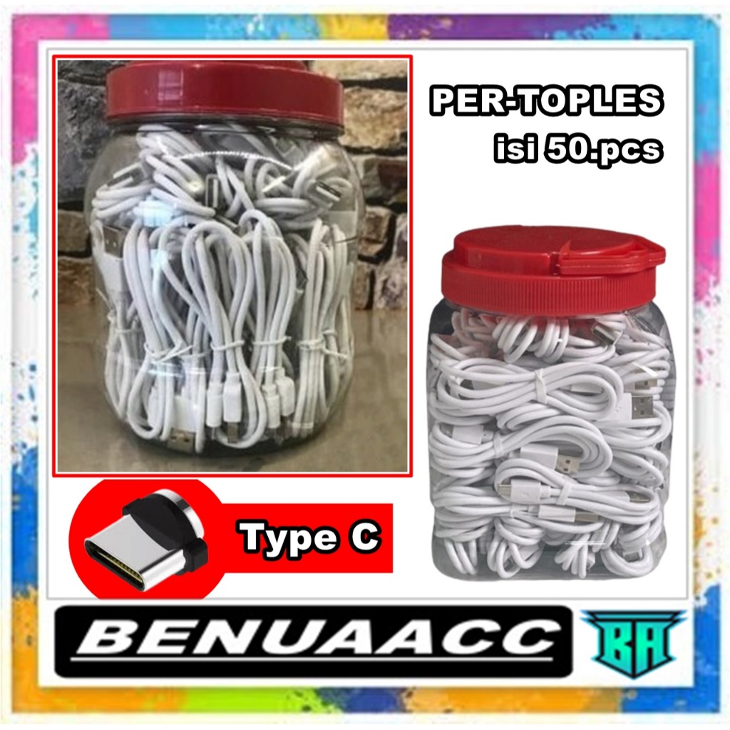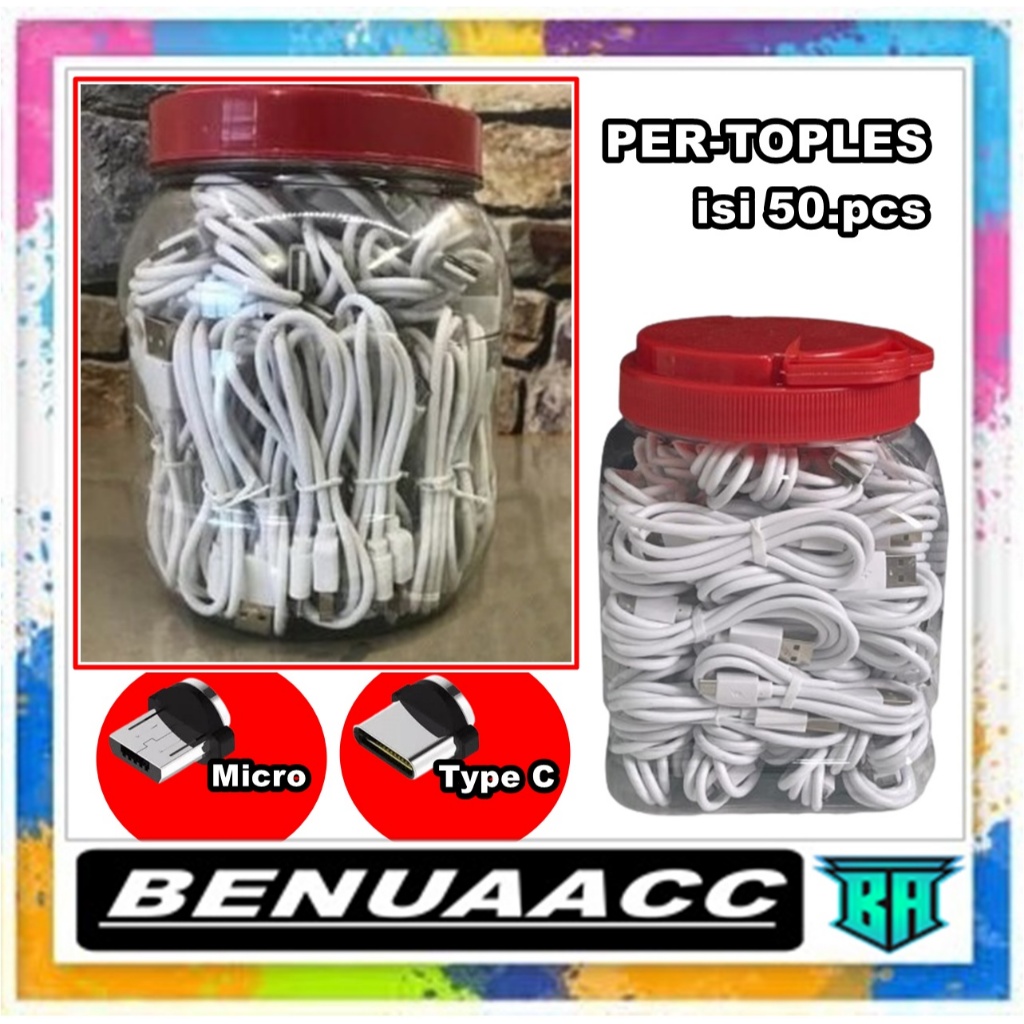 [ TOPLES ] Kabel Data [ Authantic Putih ] 2.0A [ Micro & Tipe C ] Jual Per Toples isi 50pcs [JUAL PER-TOPLES]