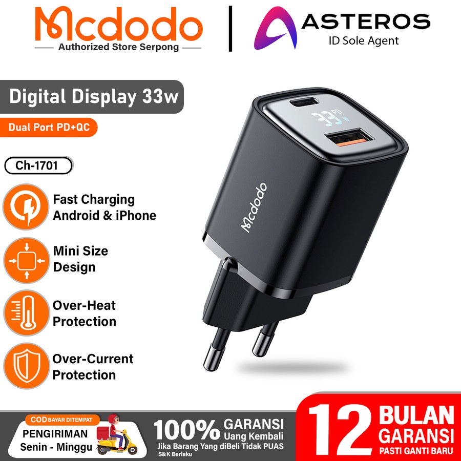 MCDODO Kepala Charger 33W PD + QC Digital Display Fast Charging Android / iPhone