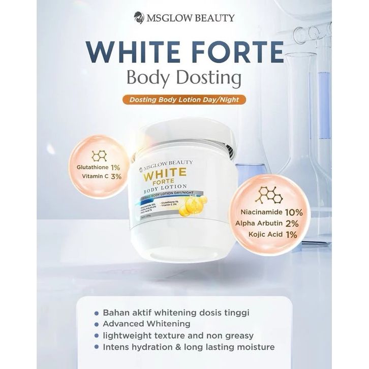 hb dosting MS GLOW WHITE FORTE SERIES - Dosting Body lotion 2509r & Body Tint 1509r - Paket Pemutih Badan Permanen Cepa