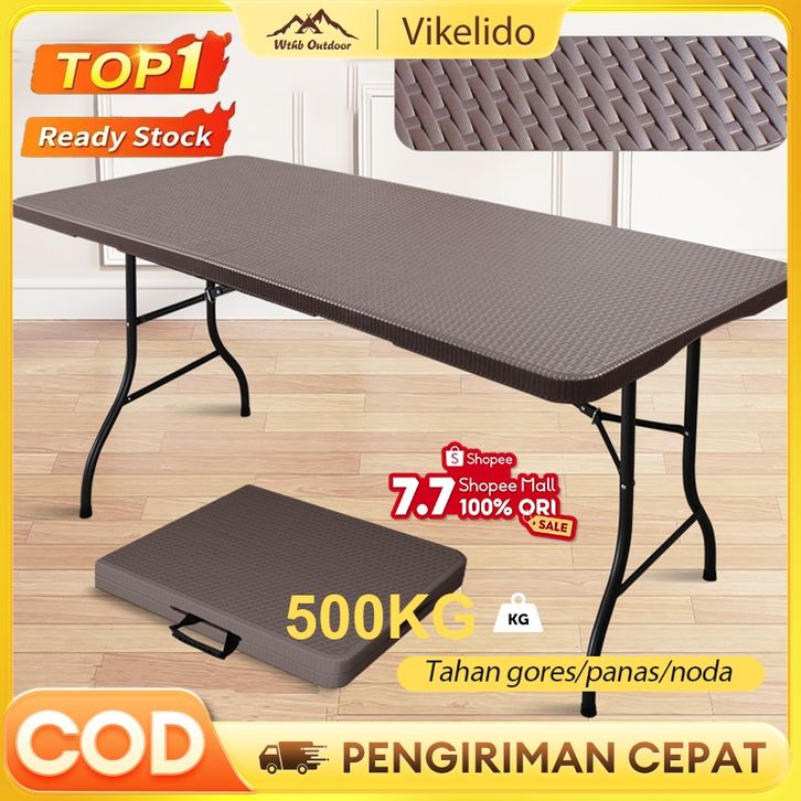 Meja lipat portable cokelat Meja lipat jualan Penebalan 1.2/1.5/1.8m meja lipat plastik meja lipat Outdoor Indoor