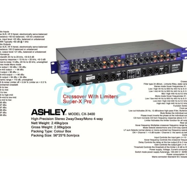 MIXER AUDIO CROSSOVER ASHLEY CX3400CX 3400 WITH LIMETERS SUPER X PRO ORIGINAL