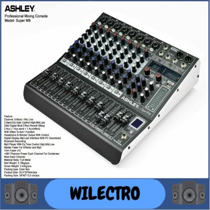 MIXER AUDIO ASHLEY SUPER M8 COMPRESSOR SUPERM8 SUPER M 8 ORIGINAL WITH COMPRESSOR BLUETOOTH-RECORDING-USB