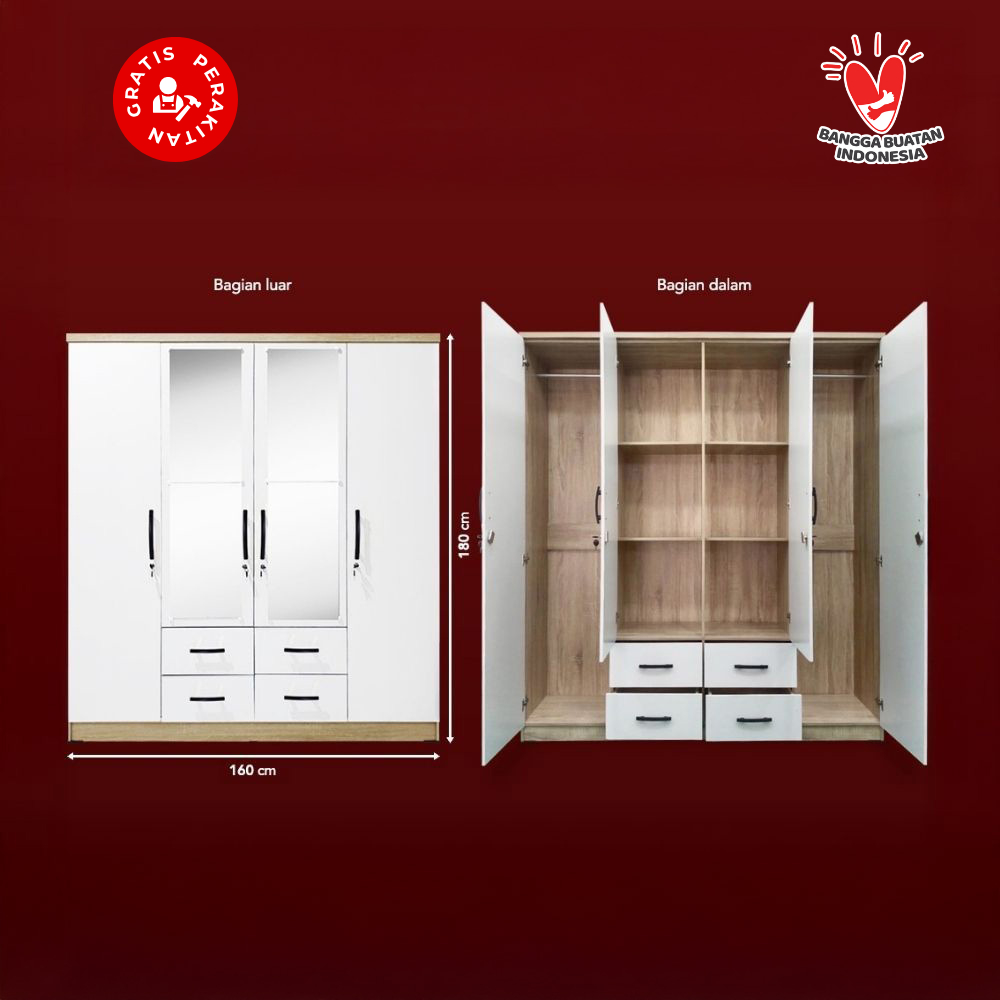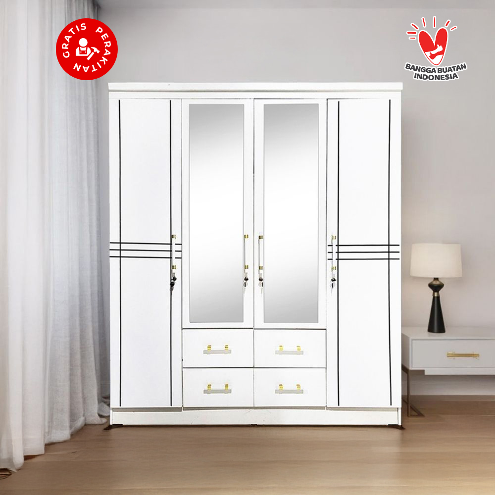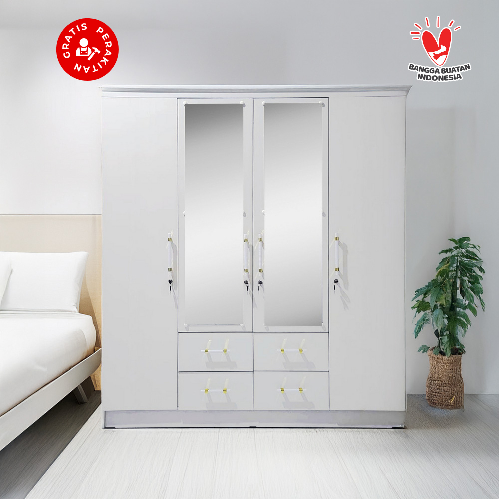 Harvest Furniture Lemari Pakaian Baju 4 Pintu Murah Modern Minimalis