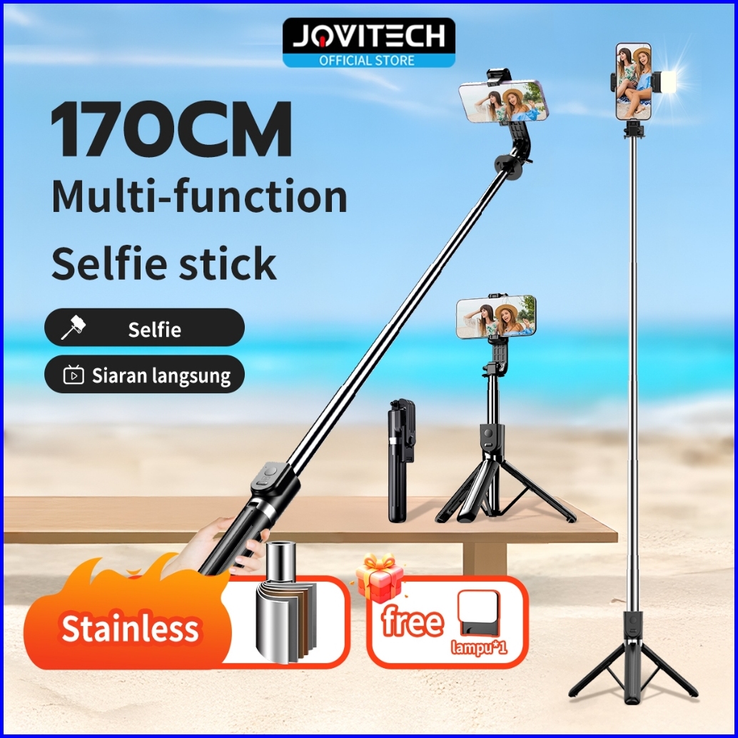 Jovitech Tongsis Selfie Tripod Lampu Led Bluetooth 4 In 1 Dengan Remote Control Selfie Stick Portable Flexible Lampu Led