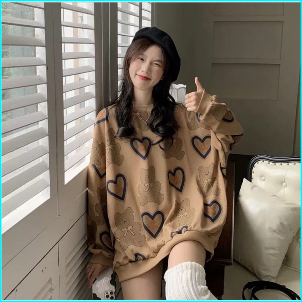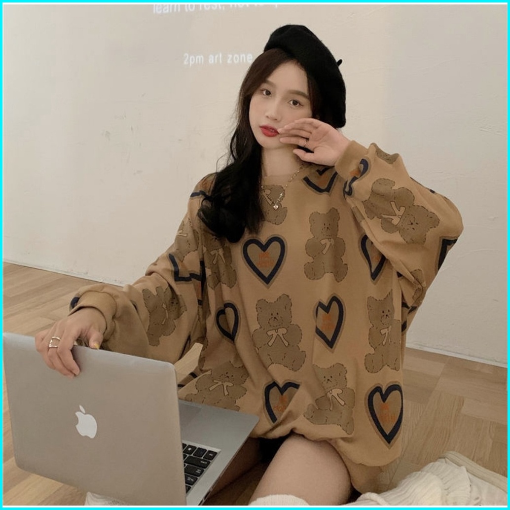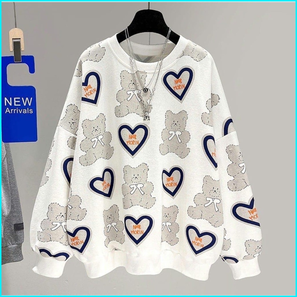 Tf - Morin Love Bear Sweatshirt Wanita Korean Look Reguler Size Sweater Remaja Dewasa
