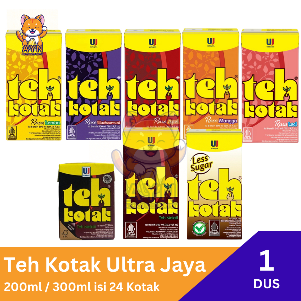 Teh Kotak Ultra Jaya 200 ml / 300 ml Less Sugar / Lemon / Leci / Mangga [ 1 dus isi 24 pcs ]