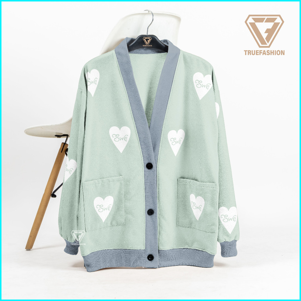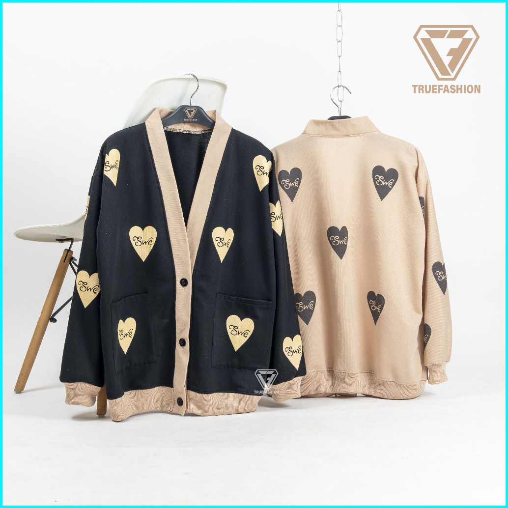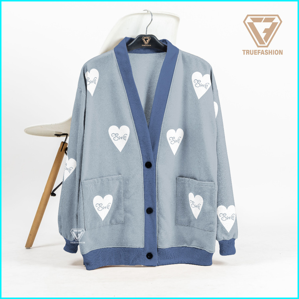 Tf - Swe Love Cardigan Wanita Korean Style Full Print Kardigan Dewasa Remaja Kancing Bersaku