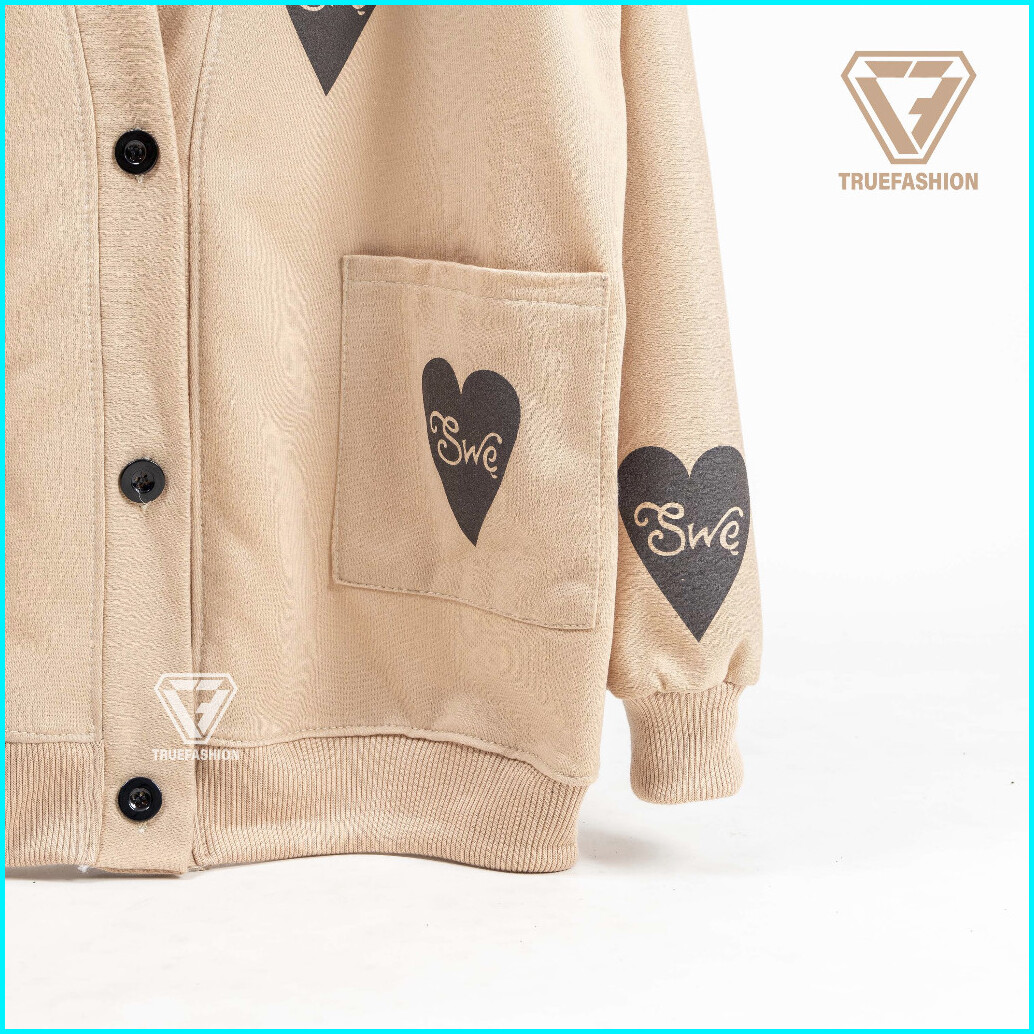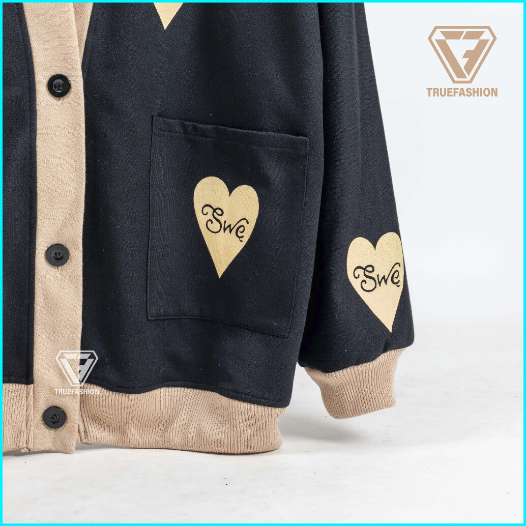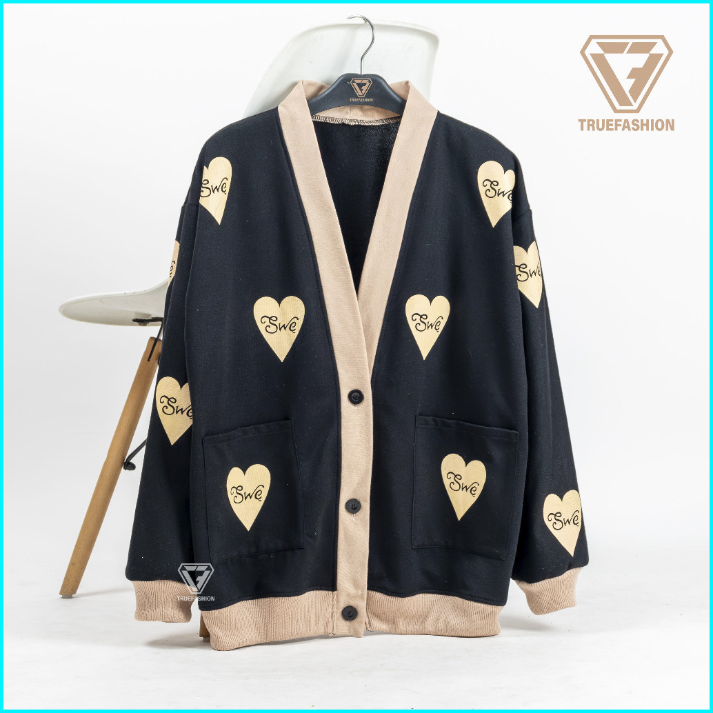 Tf - Swe Love Cardigan Wanita Korean Style Full Print Kardigan Dewasa Remaja Kancing Bersaku