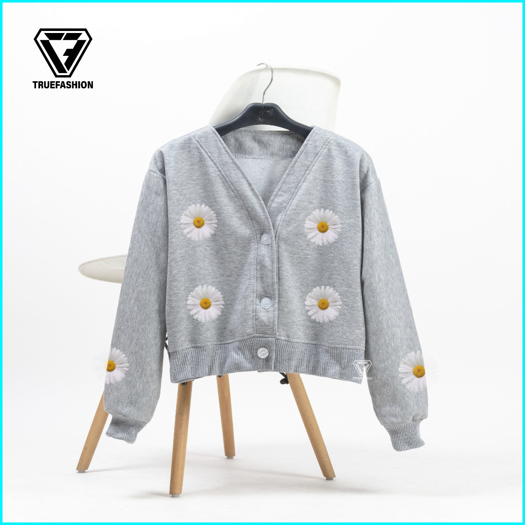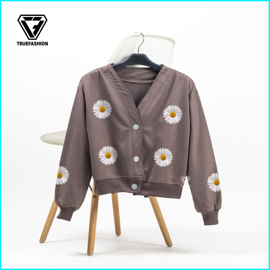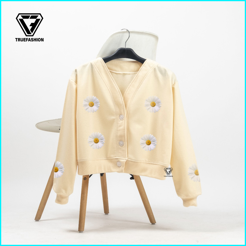 Tf - Jennie Daisy Flower Cardigan Crop Wanita Korean Style Lalisa Kardigan Sweater