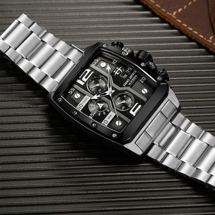Evans Jayden Jam Tangan Pria 9618 Rantai Stainless Steel Chronograph Kaca Sapphire Water Resistant 5ATM