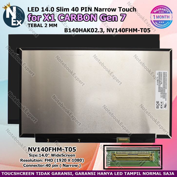 Led 14.0 slim 40 pin Narrow Touch B140HAK02.3 NV140FHM-T05 for X1 carbon Gen 7
