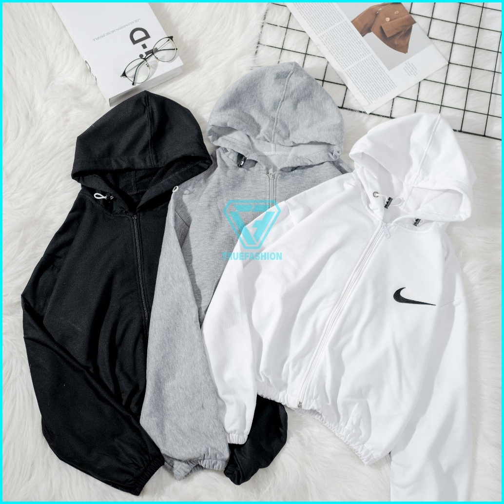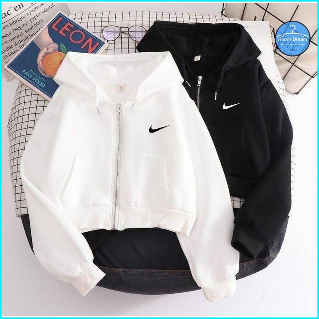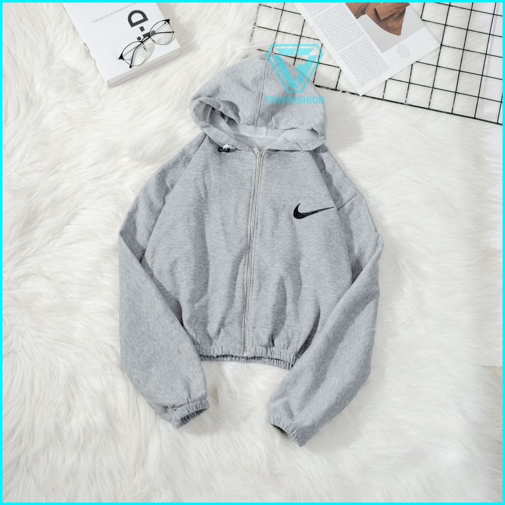 Tf - Nk Crop Bordir Jaket Wanita Hoodie Zipper Remaja Bahan Fleece Street Style Kasual