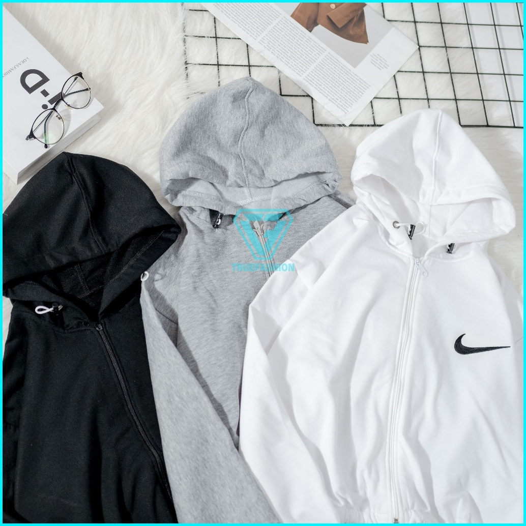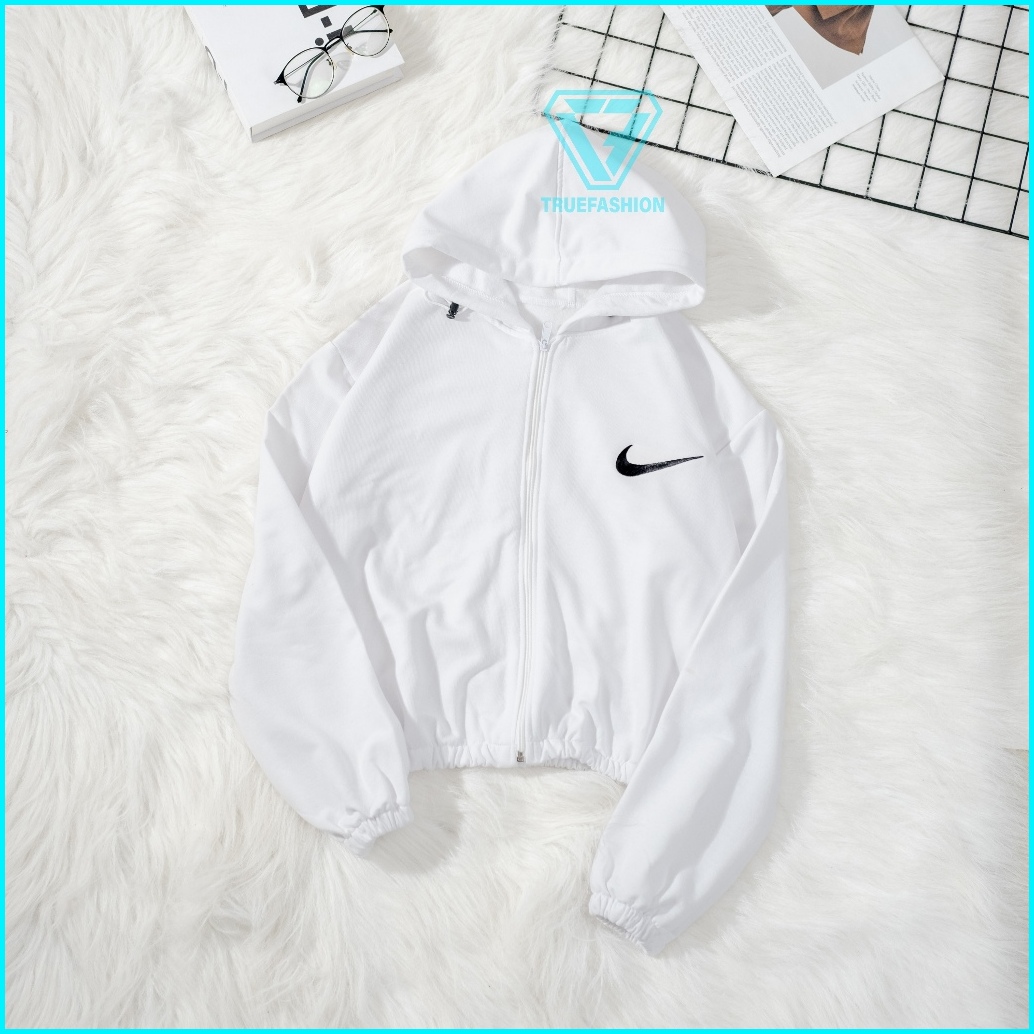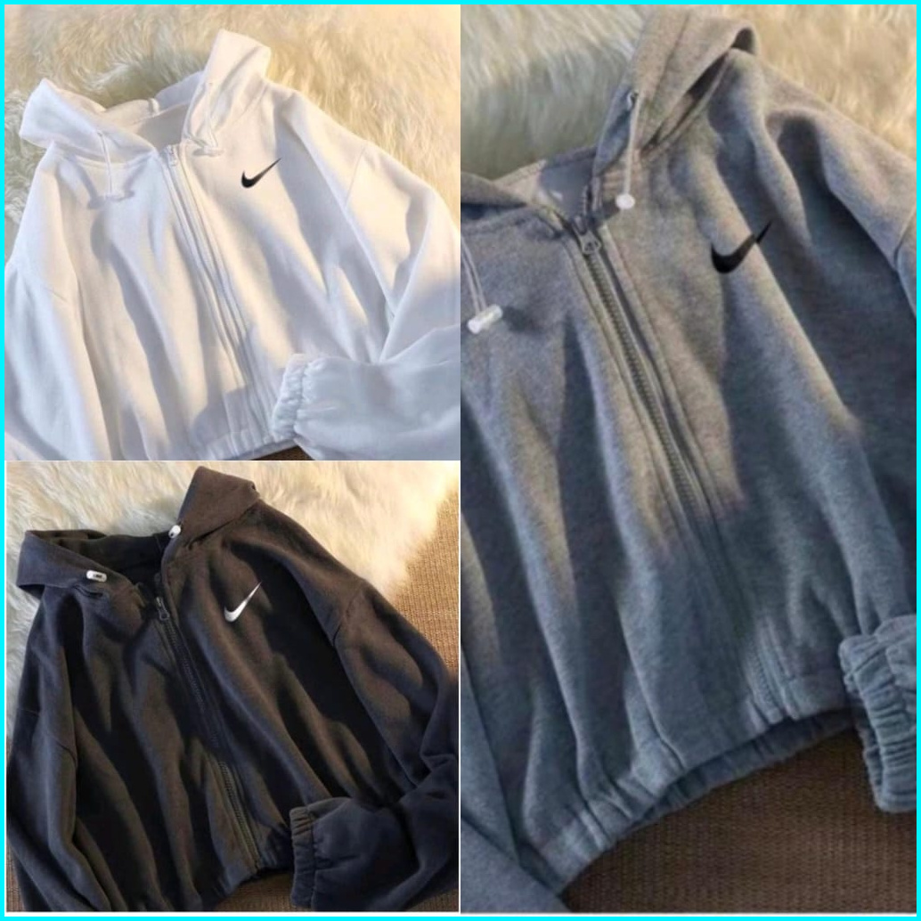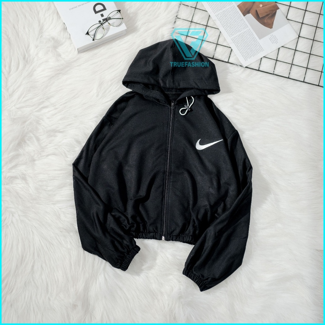 Tf - Nk Crop Bordir Jaket Wanita Hoodie Zipper Remaja Bahan Fleece Street Style Kasual