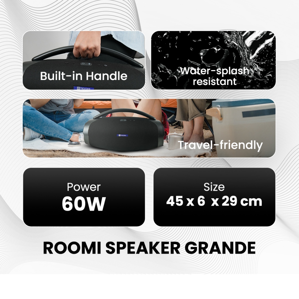 ROOMI Grande Portable Speaker with Powerful Bass Upbeat Sound for Sports and Outdoor Activities MMS0189