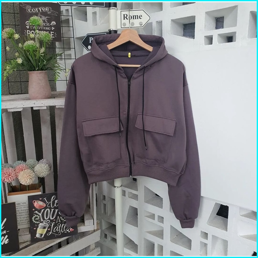 Zarra Croop Hodie Jaket Wanita - Jaket Crope Wanita Casual
