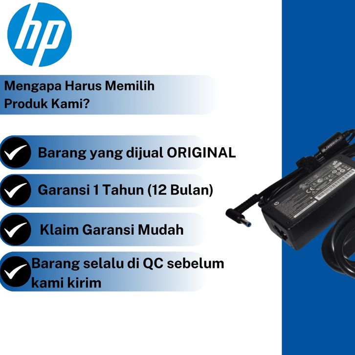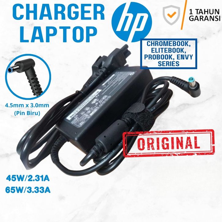 Charger Laptop Original Adaptor Laptop HP Pin Biru All Laptop HP 14 14S Envy 14 Pavilion 15 Elitebook ProBook Series
