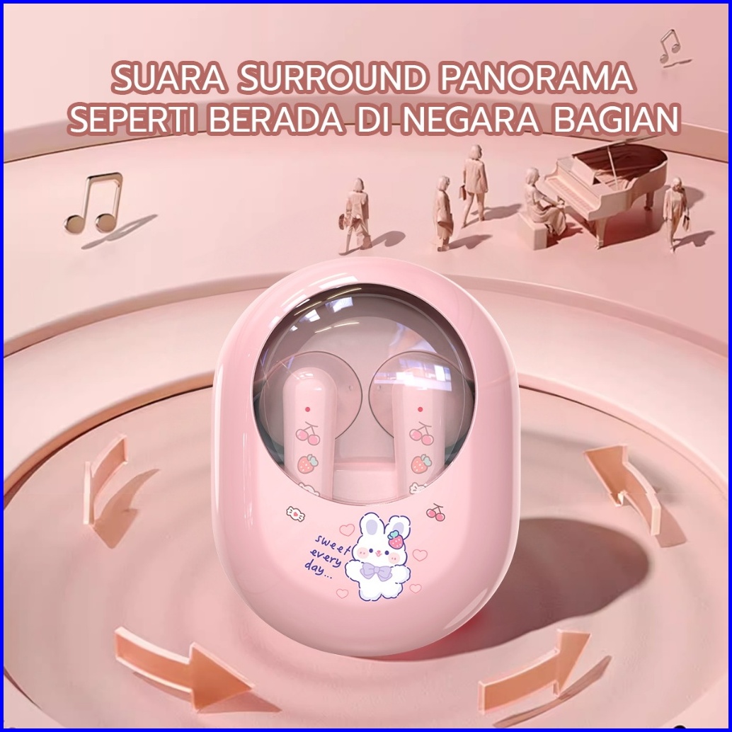 Jovitech Headset Bluetooth 5.3 Enc Peredam Kebisingan Tws Karakter Lucu 100 Ori Casing Transparan Suara Hifi Stereo Supe