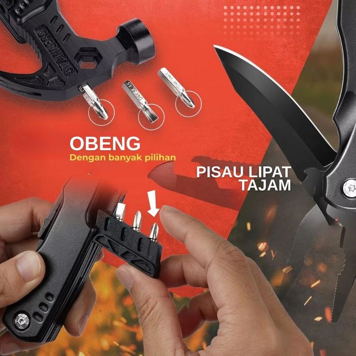 Palu MULTIFUNGSI Tang Lipat Pisau Axe Hammer Alat Survival Tools Camping Mendaki