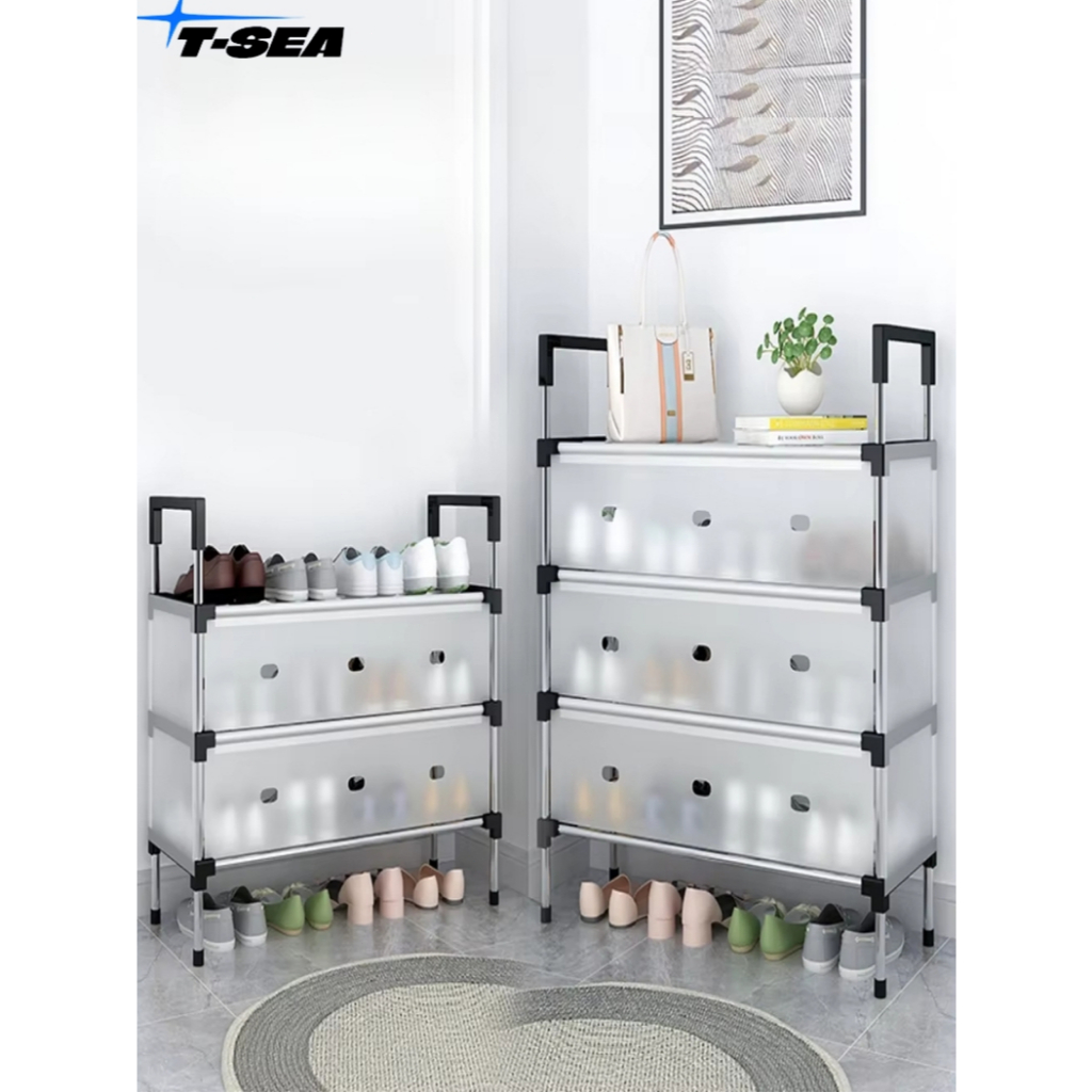 T-SEA Rak Sepatu Anti Debu 3/4/5/6/7 lapis Rak sepatu Tertutup Tahan Debu Rak Sepatu Besi Kuat Tebal Kokoh Rak Tas Serba
