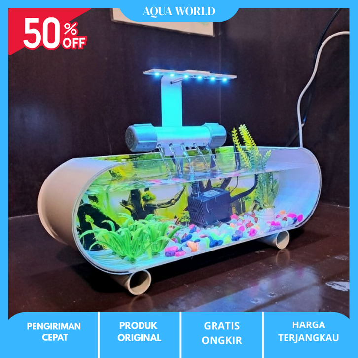 AQUARIUM MINI KACA AKRILIK FULLSETT AKUARIUM KECIL BESAR IKAN HIAS FULL SET POMPA FILTER LENGKAP LAMPU LED MURAH