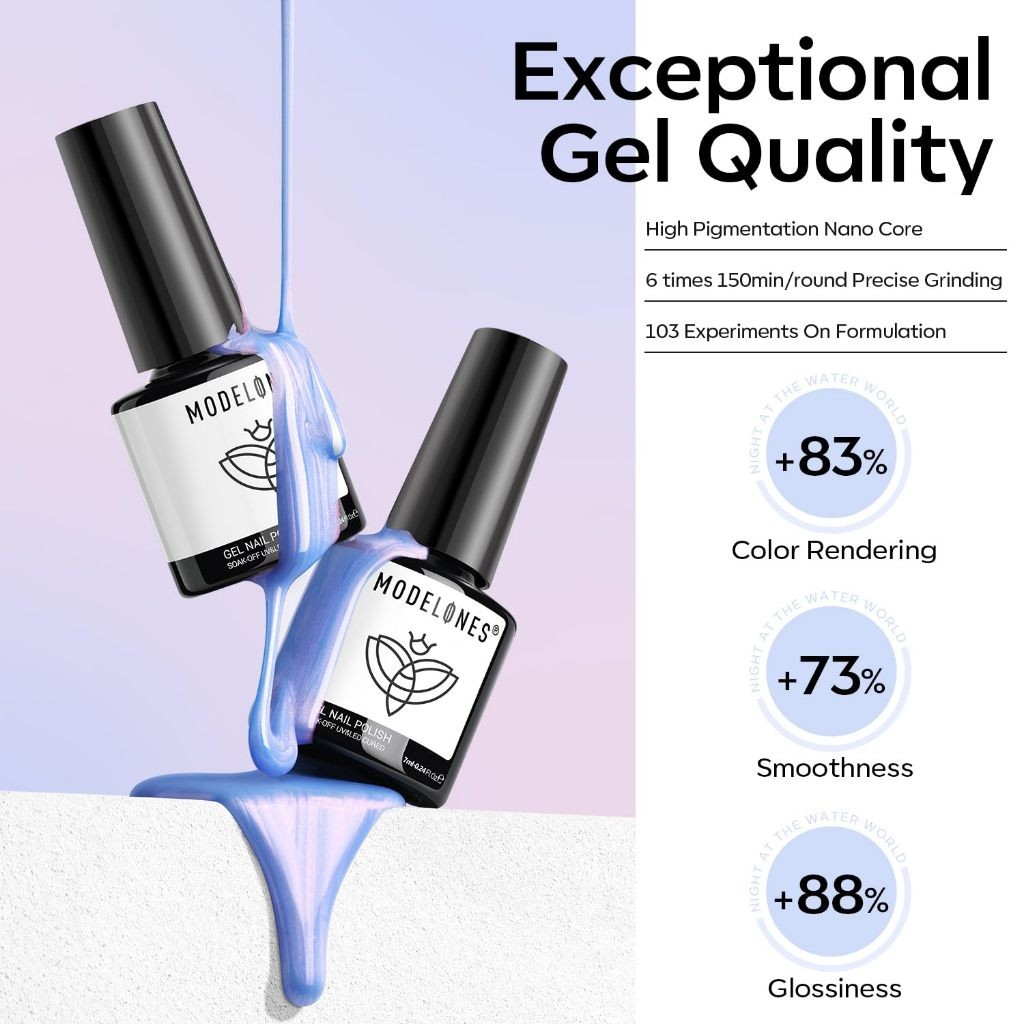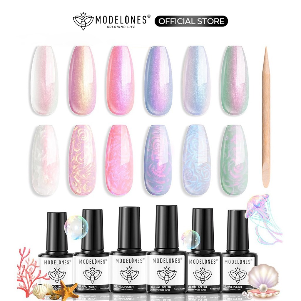 MODELONES Pearl Gel Nail Polish 6 Warna Aurora Iridescent Shimmer White Pink Purple Mermaid Nail Melukis Gel Polish Soak