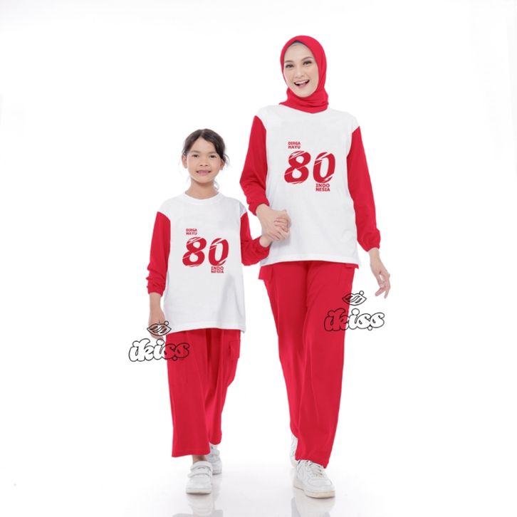 Setelan Kaos Couple Ibu Dan Anak Agustus Kemerdekaan Perempuan Katun Premium Tebal Wanita Viral One Set Baju Olahraga