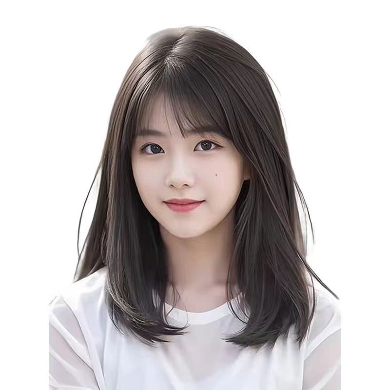 Wig Wanita Rambut Pendek, Rambut Panjang Wanita, Kepala Penuh Penutup Rambut Poni Udara Alami, Selubung Wig Atas Penuh F